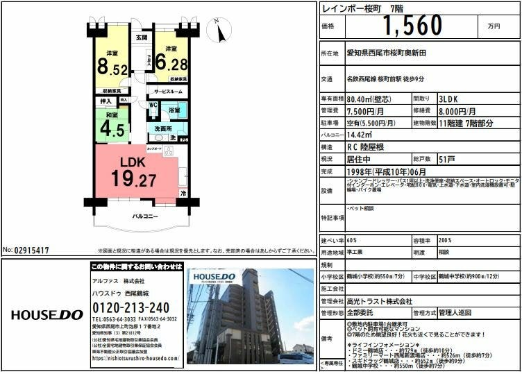 🏠レインボー桜町 7階 1560万円 中古マンション