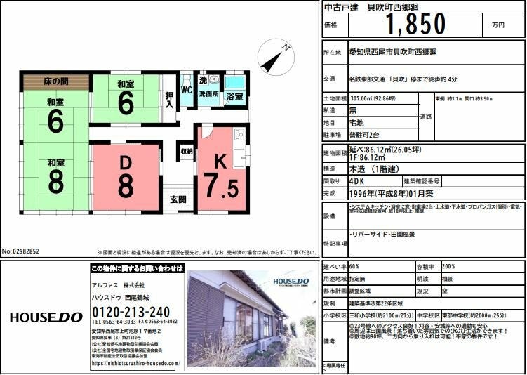 🏠西尾市貝吹町西郷廻 1850万円 中古戸建